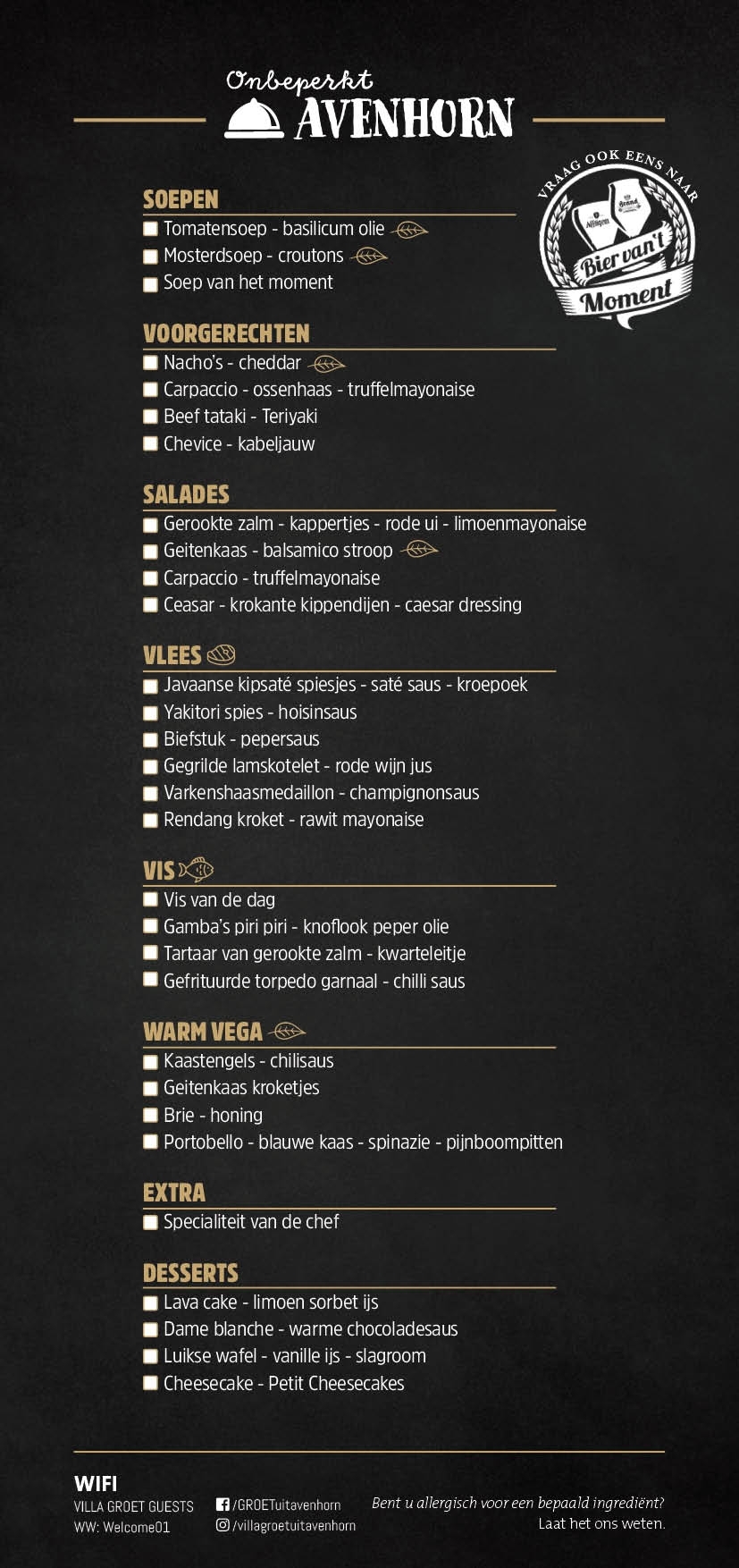 Onze onbeperkt kaart is weer vernieuwd. Reserveer je snel?